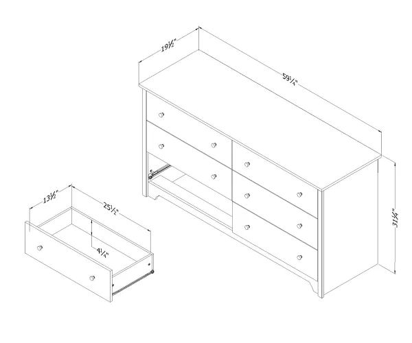- Contemporary Style: With a modern design, this double dresser features a decorative kickboard and wooden knob handles.